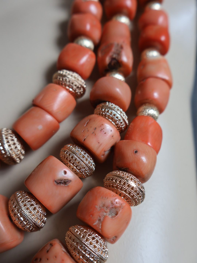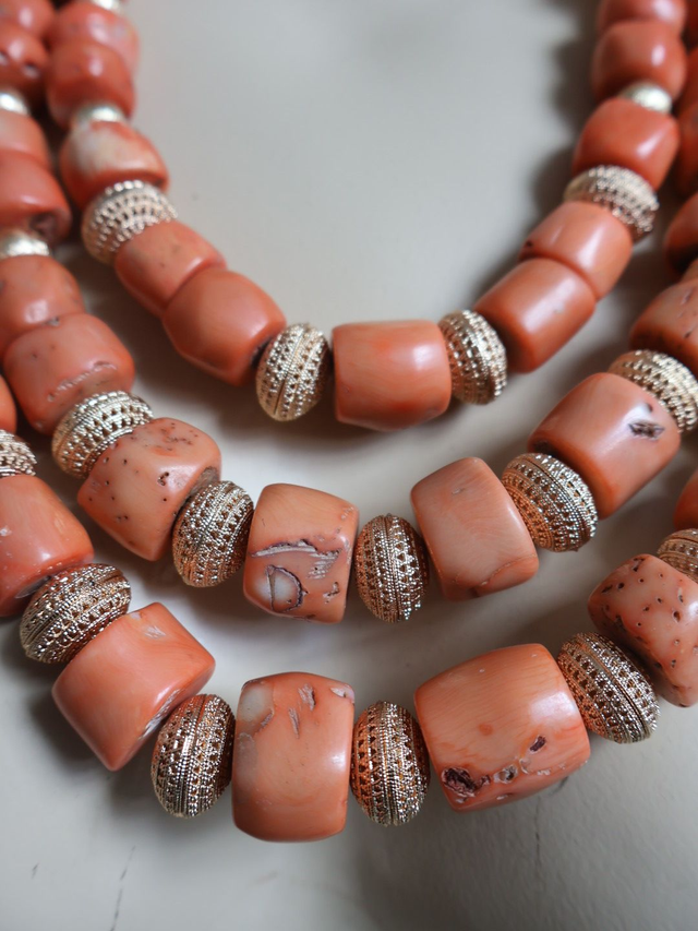 Introducing our stunning 3-Piece Authentic Natural Coral Bead Layered Necklace Set. The deep red hue adds a bold pop of colour to any outfit, making a statement that's both elegant and vibrant.